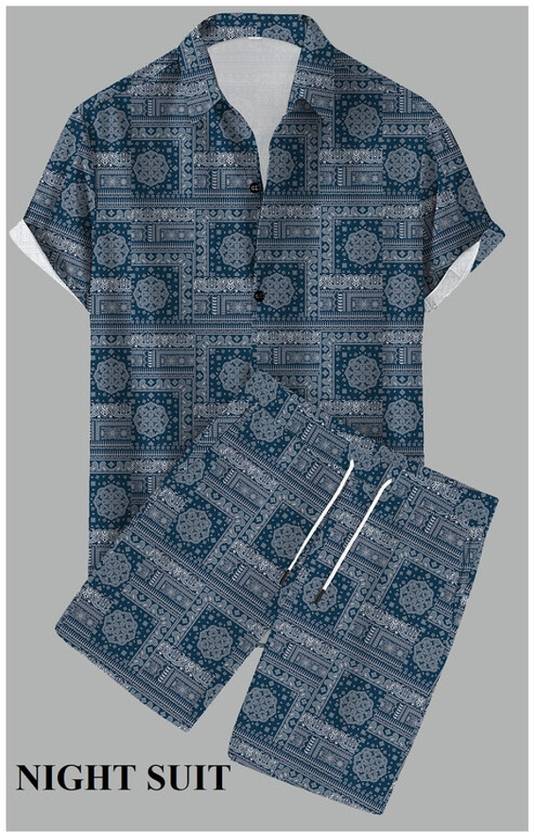 CO-ORD Set shirt and boxer are made from rich cotton blend rayon, giving them a rich look, Skin-friendly fabric for comfort. These shirt and boxer are crafted from soft and breathable fabric. They are sure to keep you comfortable throughout the day and night. Shirt with nortched collar and boxer with the drawn string