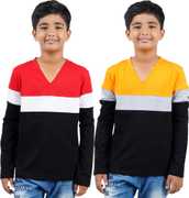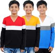 CHECKERSBAY Boys Solid Cotton Blend Regular T Shirt (Multicolor, Pack of 3)