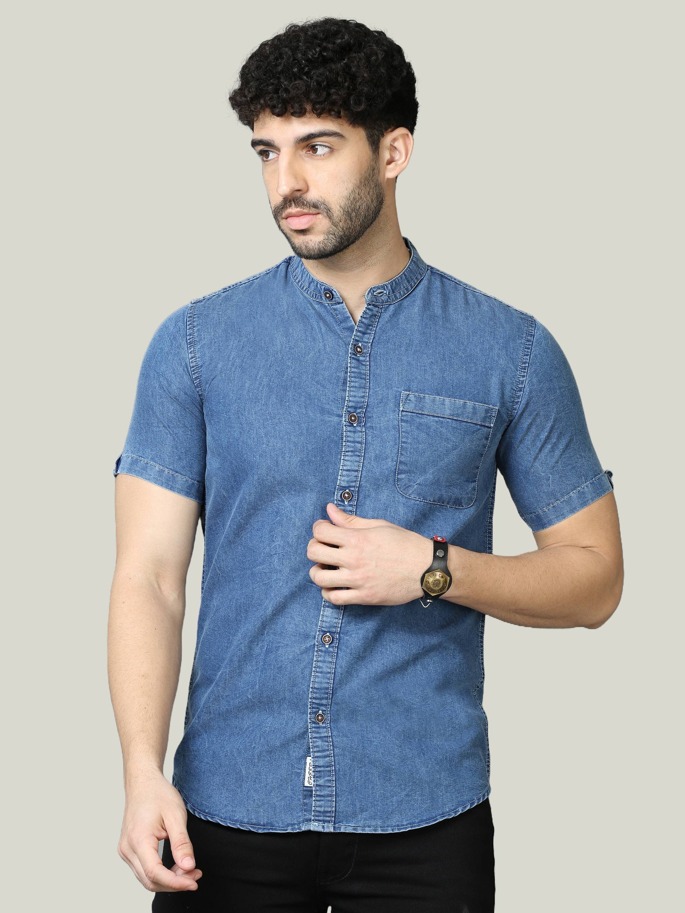 CHEEBA Shirt For Men Premium Denim Fabric: Our shirt is made from high-quality denim fabric, ensuring a soft and comfortable feel against your skin while maintaining robust durability for long-lasting wear.::Classic Fit: Tailored to provide a comfortable and flattering fit, our denim shirt is designed to enhance your silhouette without compromising on ease of movement, making it suitable for various occasions.::Versatile Style: Whether you're dressing up for a casual outing or aiming for a more polished look, our denim shirt effortlessly transitions from day to night, offering a versatile piece that complements various outfits.::Easy Maintenance: Designed for the modern man's lifestyle, our denim shirt is easy to care for, requiring minimal maintenance. Machine washable and resistant to wrinkles, it's the perfect choice for those who value both style and convenience.