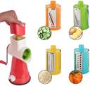Chefstar newly Launched Spiral Vegetable Slicer with 4 Different Blades Includes slicing, shredding and grating drums that can easily be changed depending on your culinary needs. Chefstar Rotary Drum Grater is a simple to use kitchen tool to help you prepare food quickly and in various styles without any hassle. The 4 different drum grater can be used to shred or grate cheese, vegetable, chocolate and nuts, by using slicing blades we can make vegetable salads, toppings, different cuts and decorative riffles. It has four different ultra-sharp Blades that can easily be changed depending on your culinary needs. This set contains high quality stainless steel drums, Coarse grate drum, Fine grate drum, Cutting and slicing drum. It has ABS plastic body and metal handle and suction lock base. Fully Hand operated, no batteries are necessary, high efficiency to work. Powerful suction feet for stability with easy release tabs. Drums are equipped with razor-sharp, stainless steel rotary blades Your fingers will feel very safe during the entire process. This product is also available in different colors.