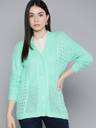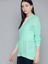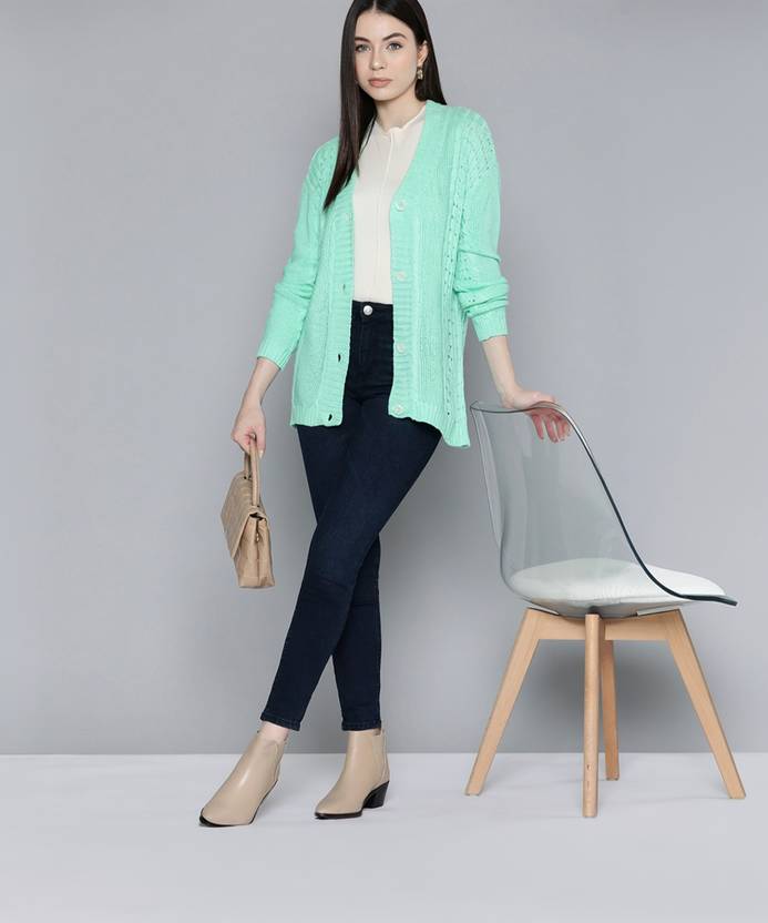 CHEMISTRY Women Self Design V Neck Green Sweater