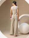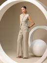 Beige striped wide leg Trousers, has an non-elasticated waistband with a concealed zip closure and 2 back pockets