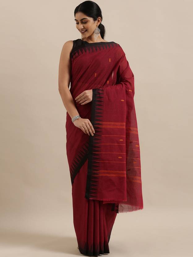 THE CHENNAI SILKS Temple Border Chettinadu Pure Cotton Saree (Red)
