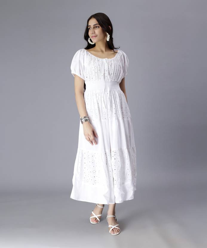 CHERIMODA Women Fit and Flare White Midi/Calf Length Dress