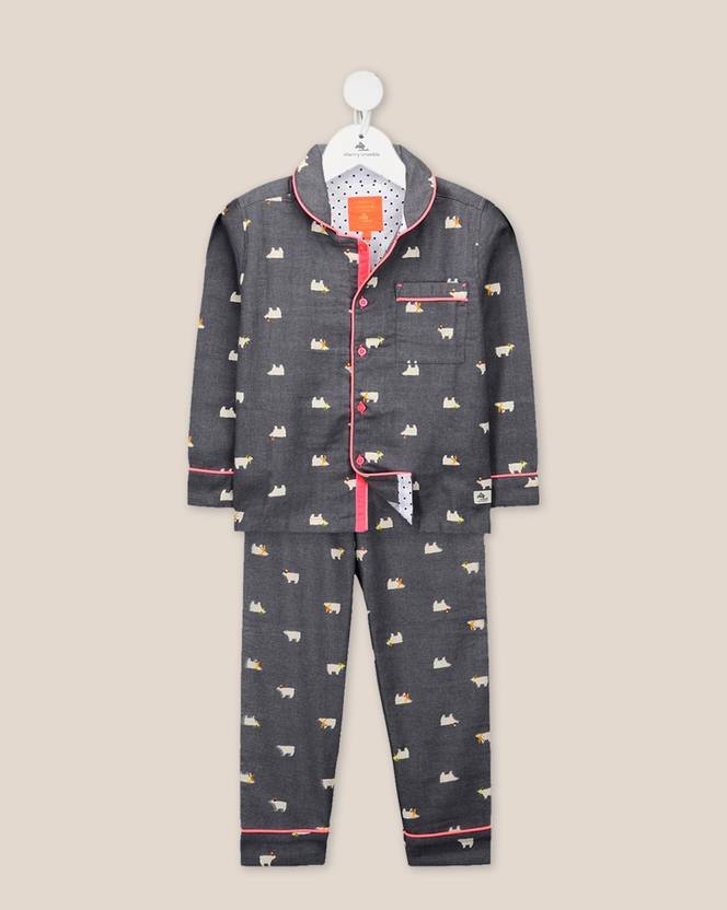 Cherry Crumble by Nitt Hyman Kids Nightwear Boys Printed Cotton Blend (Grey Pack of 1)