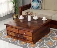 Cherry Wood Rosewood ( Sheesham ), Storage Center Table Solid Wood Coffee Table (Finish Color - Natural Walnut Finish, Pre-assembled)