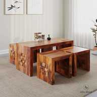 Cherry Wood Rosewood ( Sheessham ) 4 Stool Solid Wood Coffee Table (Finish Color - Teak Finish, Pre-assembled)