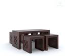 Cherry Wood Rosewood ( Sheessham ) 4 Stool Solid Wood Coffee Table (Finish Color - Walnut Finish, Pre-assembled)