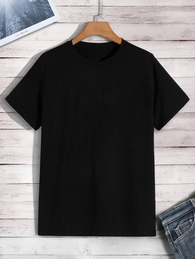 CHESHTHA Solid Men Round Neck Black T-Shirt