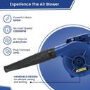 POWERFUL MOTOR AND AIR PRESSURE: The Air Blower has a 500W motor with turbo technology, producing high air velocity and a cleaning surface of 2.2m³/min. Use it to remove dust from corners, joints, and between windows.