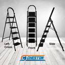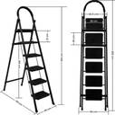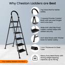 Cheston MS Steel Black Ladder for Home 6 Steps Foldable 6.3 FT Anti Skid Load 150+ Kgs Steel Ladder (With Platform, Hand Rail)