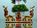 Chhariya Crafts Elephant Pair With Laxmi Chandan Roli Pair Kumkum Box for Gift and Pooja Decorative Showpiece - 7 cm (Metal, Multicolor)