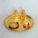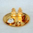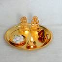 Chhariya Crafts Laxmi Ganesh Pooja Thali With Diya And Prasad Bowl For Home And Office Aluminium (5 Pieces, Gold)