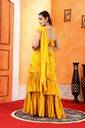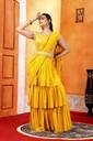 ** FABRIC ** : Saree - Georgette (Color - Yellow) || Blouse - Georgette (Color - Yellow) ** SIZE ** : Waist Adjustable Upto 42 inch || Length- 40 inch || Blouse Bust Alterable Upto 42 inch || Extra Sleeves Available** PACKEGE CONTAIN ** : 1 Saree || 1 Stitched Blouse( Extra Sleeves Are Available) || 1 Stitched Belt ** DETAIL ** : 3 Step Ruffle Style Lehenga Saree With Fully Flair || 2.25 Meter Pallu || Floral Embroidery Blouse(With Extra Sleeves) || Embroidery Work Ready Waist Belt || Decorated With Ruffle, Moti Lace & Delicate Embroidery Also Adding Zip & Doris || This is Ready To Wear Stitched Lehenga Saree, Waist is Adjustable And Blouse is Alterable, perfect for most body types. || Please Swipe images and check Product Video. It's Fully Stitched Lehenga Within 10 Second You can Wear It. ** WHY PURCHASE? ** : Branded Product || Soft Finished || Comfortable To Wear || Best Quality In Best Price