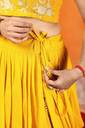 ** FABRIC ** : Saree - Georgette (Color - Yellow), Blouse - Georgette (Color - yellow), ** SIZE ** : Waist Adjustable Upto 42 inch, Length- 40 inch, Blouse Bust Alterable Upto 42 inch, Extra Sleeves Available, ** PACKEGE CONTAIN ** : 1 Saree, 1 Stitched Blouse( Extra Sleeves Are Available), 1 Stitched Belt, ** DETAIL ** : 3 Step Ruffle Style Lehenga Saree With Fully Flair, 2.25 Meter Pallu, Floral Embroidery Blouse(With Extra Sleeves), Embroidery Work Ready Waist Belt, Decorated With Ruffle, Moti Lace & Delicate Embroidery Also Adding Zip & Doris, This is Ready To Wear Stitched Lehenga Saree, Waist is Adjustable And Blouse is Alterable, perfect for most body types., Please Swipe images and check Product Video. It's Fully Stitched Lehenga Within 10 Second You can Wear It., ** WHY PURCHASE? ** : Branded Product, Soft Finished, Comfortable To Wear, Best Quality In Best Price