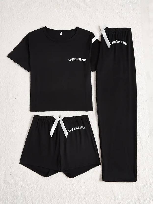 CHHOTE NAWAB Women Printed Black Top & Pyjama Set