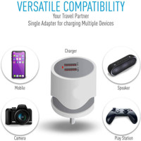 This charger is specifically designed for multiple devices, like mobile phones, cameras, speakers, PlayStation, and more.