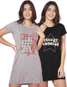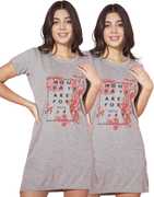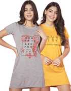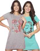 Pack of 2 Women Printed Round Neck Cotton Blend Grey, Blue T-Shirt