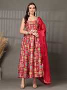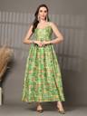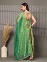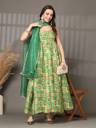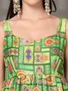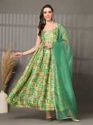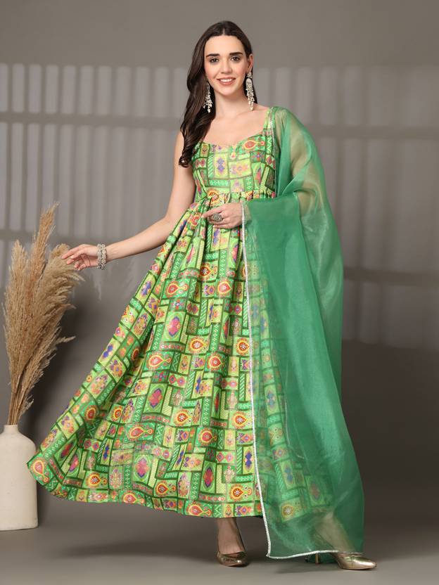 Geometric Print Art Silk Stitched Flared/A-line Gown (Green)