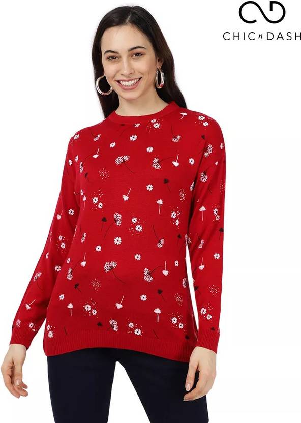 Chic n Dash Printed Round Neck Casual Women Multicolor Sweater