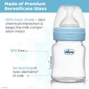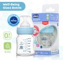 Chicco Well-Being Glass Feeding Bottle (120ml, Slow Flow) (Blue) - 120 ml (Blue)
