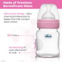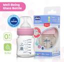 Chicco Well-Being Glass Feeding Bottle (120ml, Slow Flow) (Pink) - 120 ml (Pink)