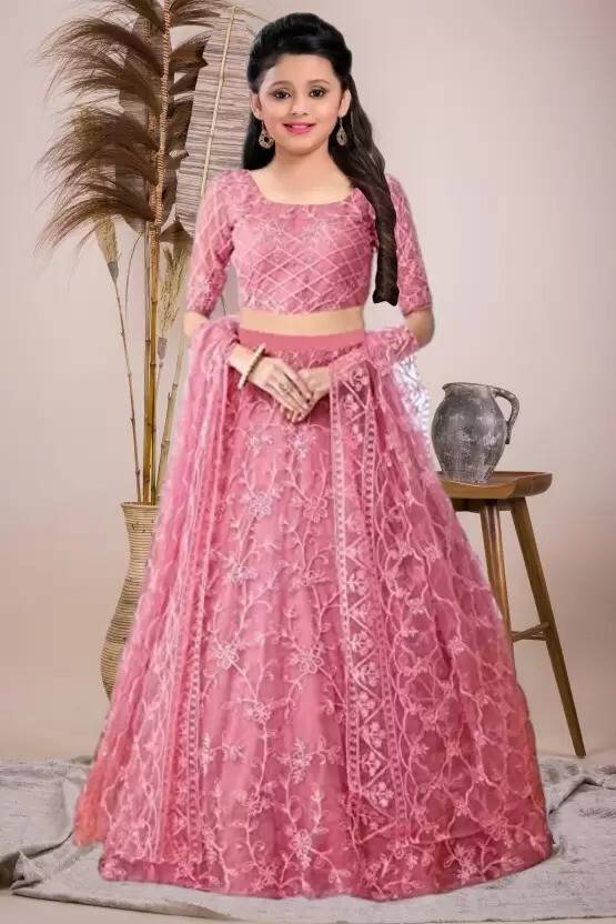 Girls Lehenga Choli Ethnic Wear Embroidered Lehenga, Choli and Dupatta Set (Pink, Pack of 1)