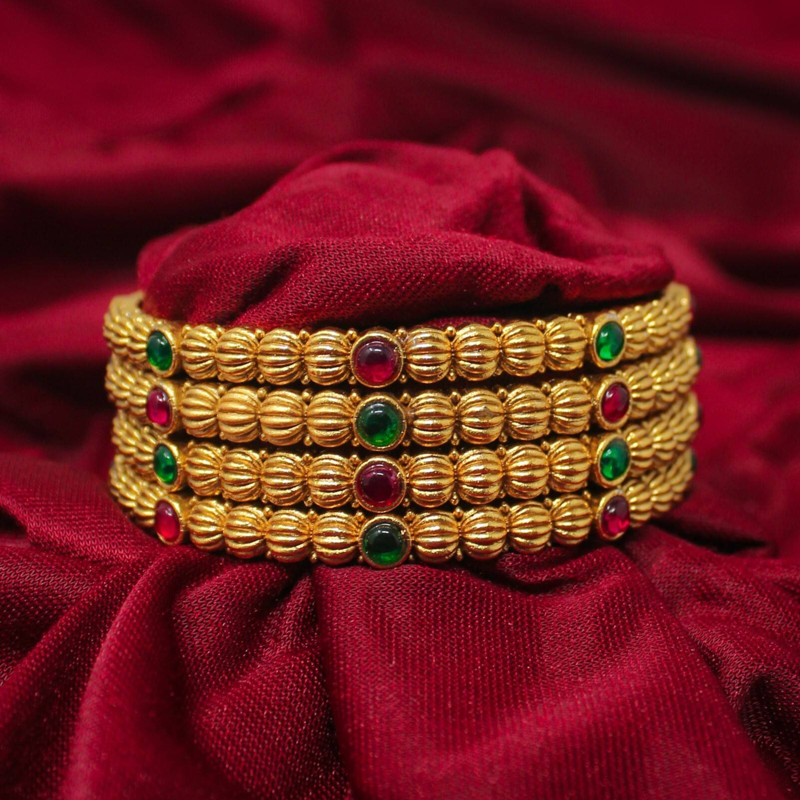 Chigold Traditional Ball Design Gold Plated Multicolor Ruby Ethnic Bangle Set For Women (Set of 4)
