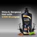 CHIK Thick & Glossy black shampoo contains the goodness of Black Tea, Badam & Bhringraj oil. It helps to enhance hair shine & strengthens your hair thereby giving you thicker looking & glossy hair. The shampoo helps you get shiny hair without causing any harmful effects. Get gorgeous looking shiny hair with regular use of CHIK Thick & Glossy Black shampoo.Chik Protein solutions that fights hair thinning problems.It helps you get gorgeous looking shiny hairContains the goodness of Black Tea, Badam & Bhringraj oil.Reduces hairfall due to hair breakage.Suitable for normal to dry hair.Country of Origin: India. Direction Of Use : After washing your hair thoroughly take 2 to 3 drops of the shampoo on your palm. Then apply the shampoo gently massaging it all over your hair from the roots to the tips. Leave the shampoo on your hair for a couple of minutes & then rinse it off completely.