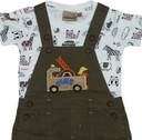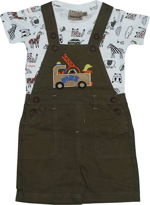 ChildKraft Dungaree For Baby Boys Casual Printed Pure Cotton (Dark Green, Pack of 1)