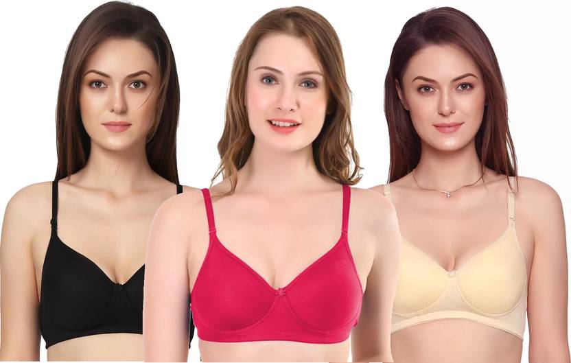 CHILEELIFE Women Full Coverage Heavily Padded Bra (Pink, Black, Beige)