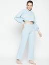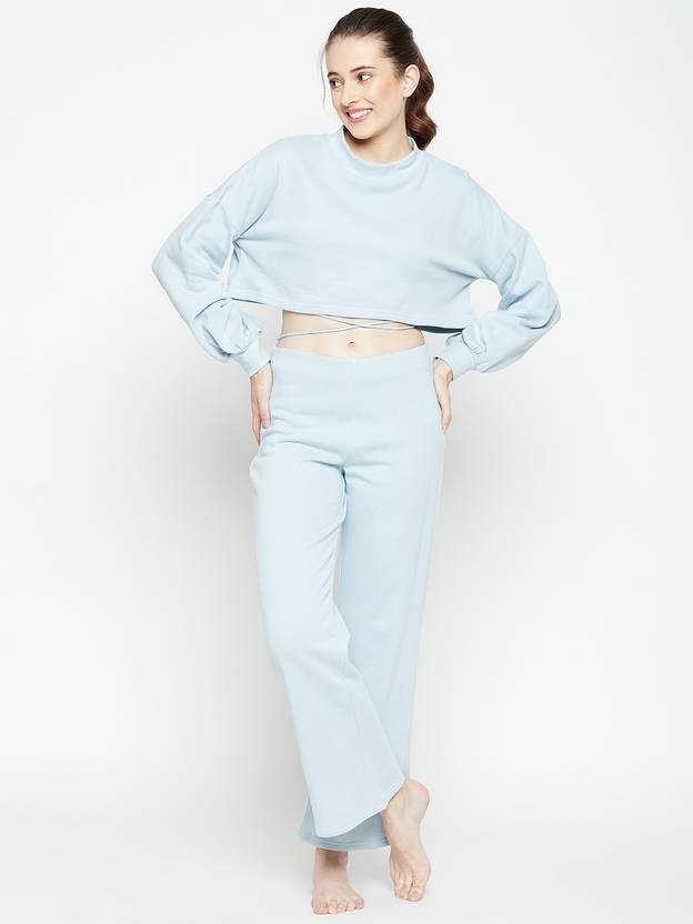 Chill Winston Women Top & Pyjama Set Light Blue Solid
