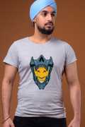 Men Printed Round Neck Cotton Blend Grey T-Shirt