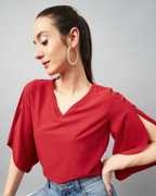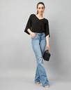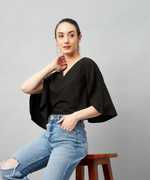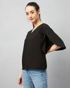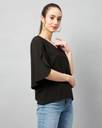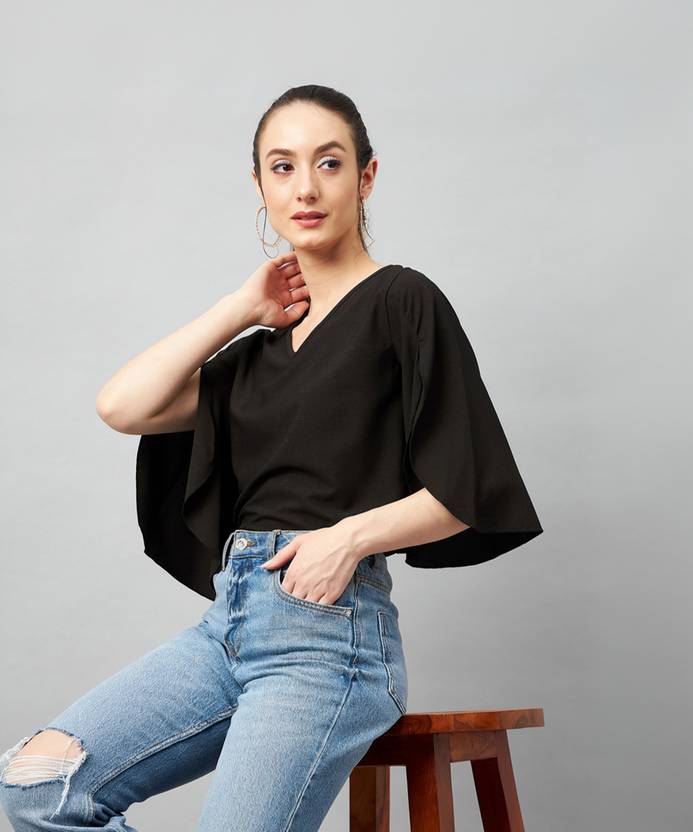 Chimpaaanzee Casual Flared Sleeve Solid Women Black Top