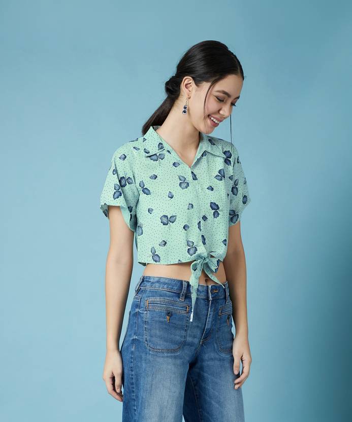 Chimpaaanzee Casual Short Sleeve Printed Women Green Top