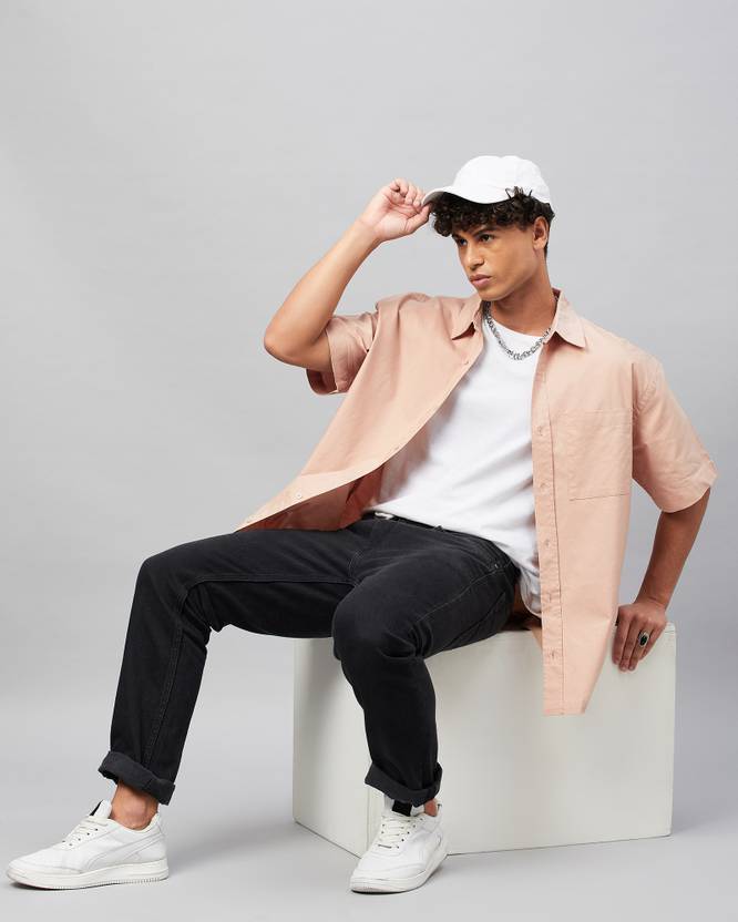 Chimpaaanzee Men Solid Casual Orange Shirt