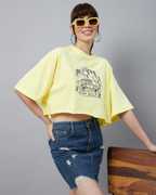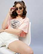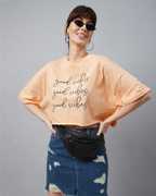 Chimpaaanzee Printed, Typography Women Round Neck Orange T-Shirt