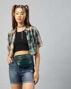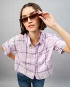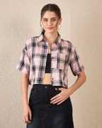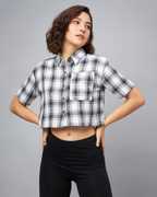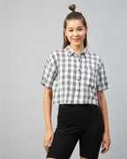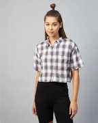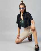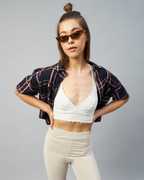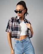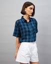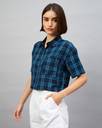 Chimpaaanzee Women Checkered Casual Dark Blue Shirt