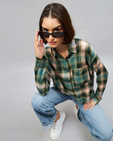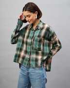 Chimpaaanzee Women Checkered Casual Green Shirt