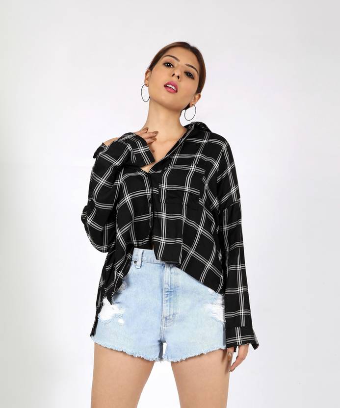 Chimpaaanzee Women Checkered Casual White, Black Shirt