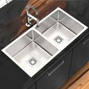 chirag 37x18x10 Kitchen Sink 37 Inches Double Bowl Handmade SS304 Stainless Steel Sink CKS3718M | Extra Heavy | Nano Coating | Premium Finish | Double Bowl Vessel Sink (Silver)