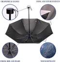 The umbrella's canopy is made of premium high density waterproof pongee fabric that can effectively prevent rainwater from penetrating down no matter how strong and rough the weather might be.umbrella offers a large canopy size able to fit two people with ease, while maintaining a small form factor when folded to easily store in your bags. It is also super light despite having a larger size.