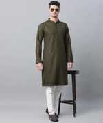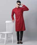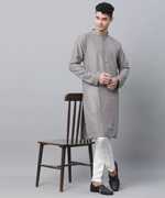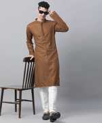 CHIRASVI Men Chikan Embroidery Straight Kurta (Brown)