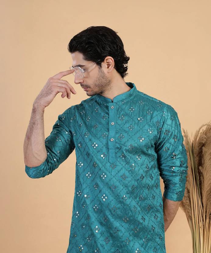 CHIRASVI Men Embroidered Straight Kurta (Blue)