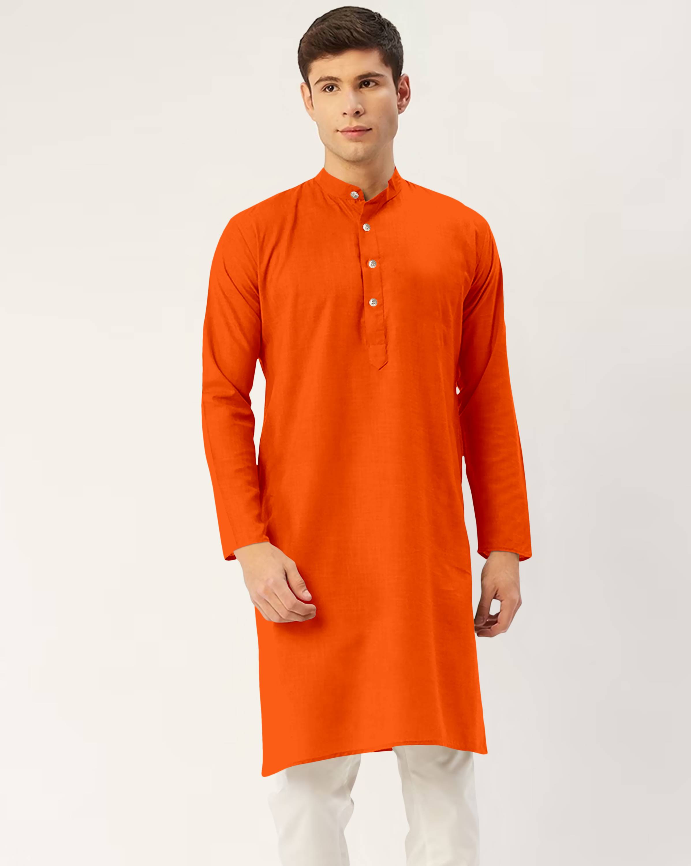 CHIRASVI Men Solid Straight Kurta (Orange)
