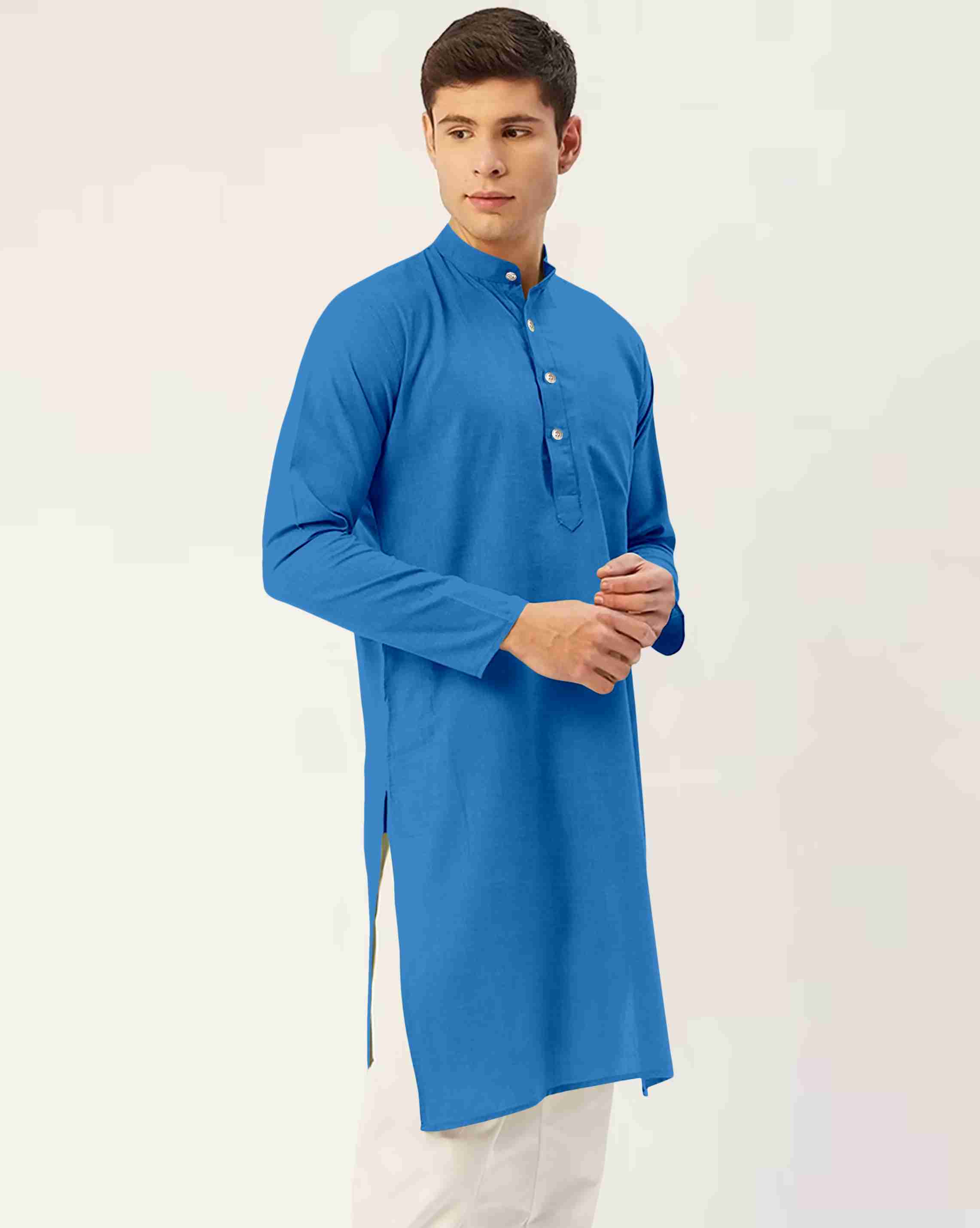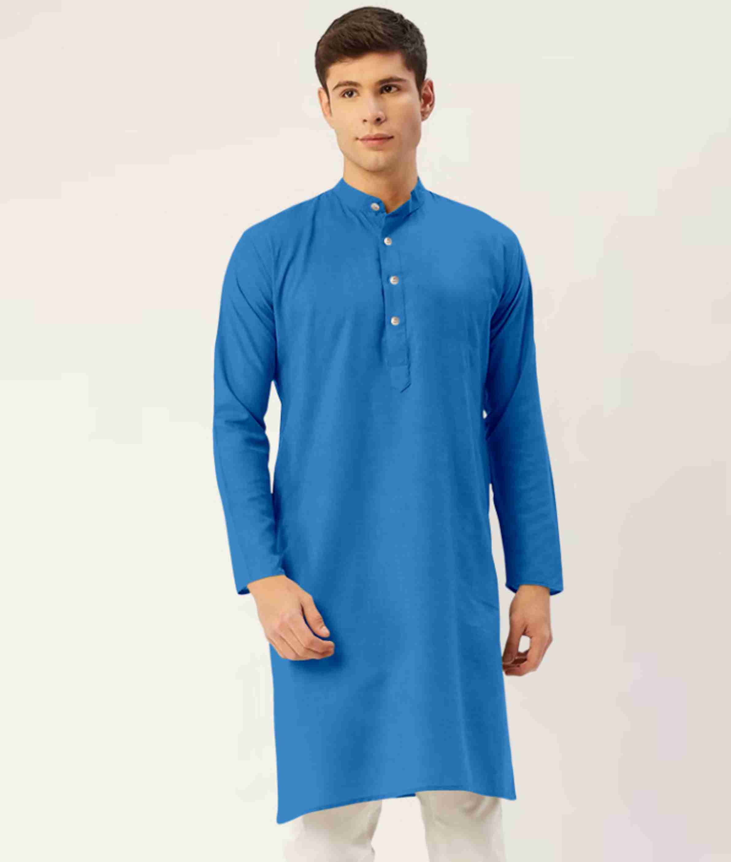 Men Solid Cotton Blend Straight Kurta (Blue, Green)