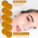 Kesar soap, also known as saffron soap, is a type of soap that is made with saffron, a spice that is derived from the Crocus sativus plant. It is typically made by infusing saffron strands into the soap base during the manufacturing process. Kesar soap is often marketed as a luxurious and indulgent soap, as saffron is one of the world's most expensive spices and is prized for its unique aroma and potential skin benefits. Saffron contains compounds that are believed to have antioxidant and anti-inflammatory properties, making it a popular ingredient in many skincare products. Kesar soap is typically used for its potential skin benefits, as well as its fragrant aroma. It may be used as a daily facial cleanser or body wash, and is often recommended for those with dry or sensitive skin due to its gentle and moisturizing properties. Overall, kesar soap is a popular choice for those seeking a luxurious and potentially beneficial alternative to traditional soaps, and may offer a range of potential benefits for the skin.