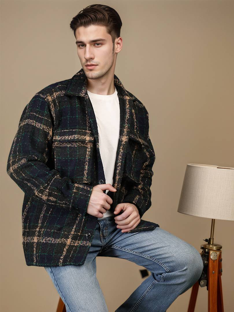 Crafted for winter comfort, this men’s shacket provides a cozy layer with soft inner lining, ensuring insulation against chilly winds while maintaining lightweight breathability. Ideal for winter walks, travel, or casual office days, this full sleeve men’s checkered jacket easily pairs with jeans, chinos, or tees, adding a rugged yet refined winter style.