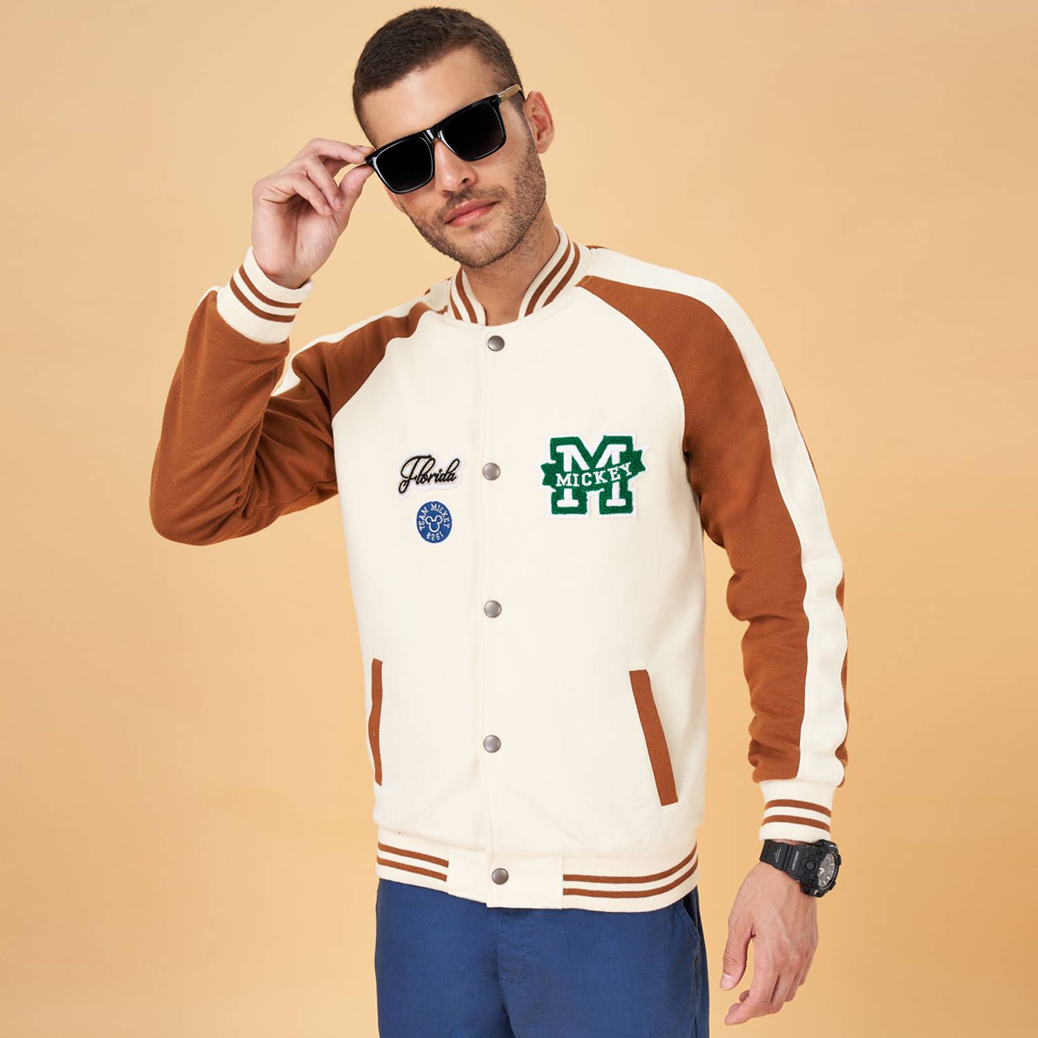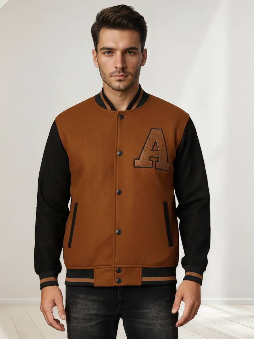 Featuring a timeless solid pattern, this men's varsity jacket offers a classic yet contemporary look that complements a wide range of outfits. Its clean design ensures versatility, making it suitable for various occasions. Whether dressing up for a casual day out or adding a touch of sophistication to a relaxed outfit, this jacket stands out for its stylish simplicity.