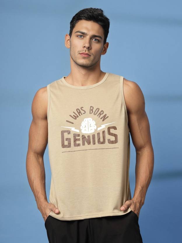 Experience functional fashion with this sleeveless sports vest, ideal for weight training, CrossFit, cardio, or summer casualwear. Designed for bodybuilders and fitness enthusiasts, this tank allows free movement and breathability with its smart relaxed cut. The bold graphic artwork and taglines like "I Was Born Genius" or "Smile Radiantly" make this a standout piece. Pair it with joggers, track pants, or shorts for a complete activewear look. Built for both performance and personality, this gym vest is your perfect workout partner. It has 60% cotton and 40% polyester mix, round neck and relaxed fit making it ideal for gym, running, lounging, casual wear etc.